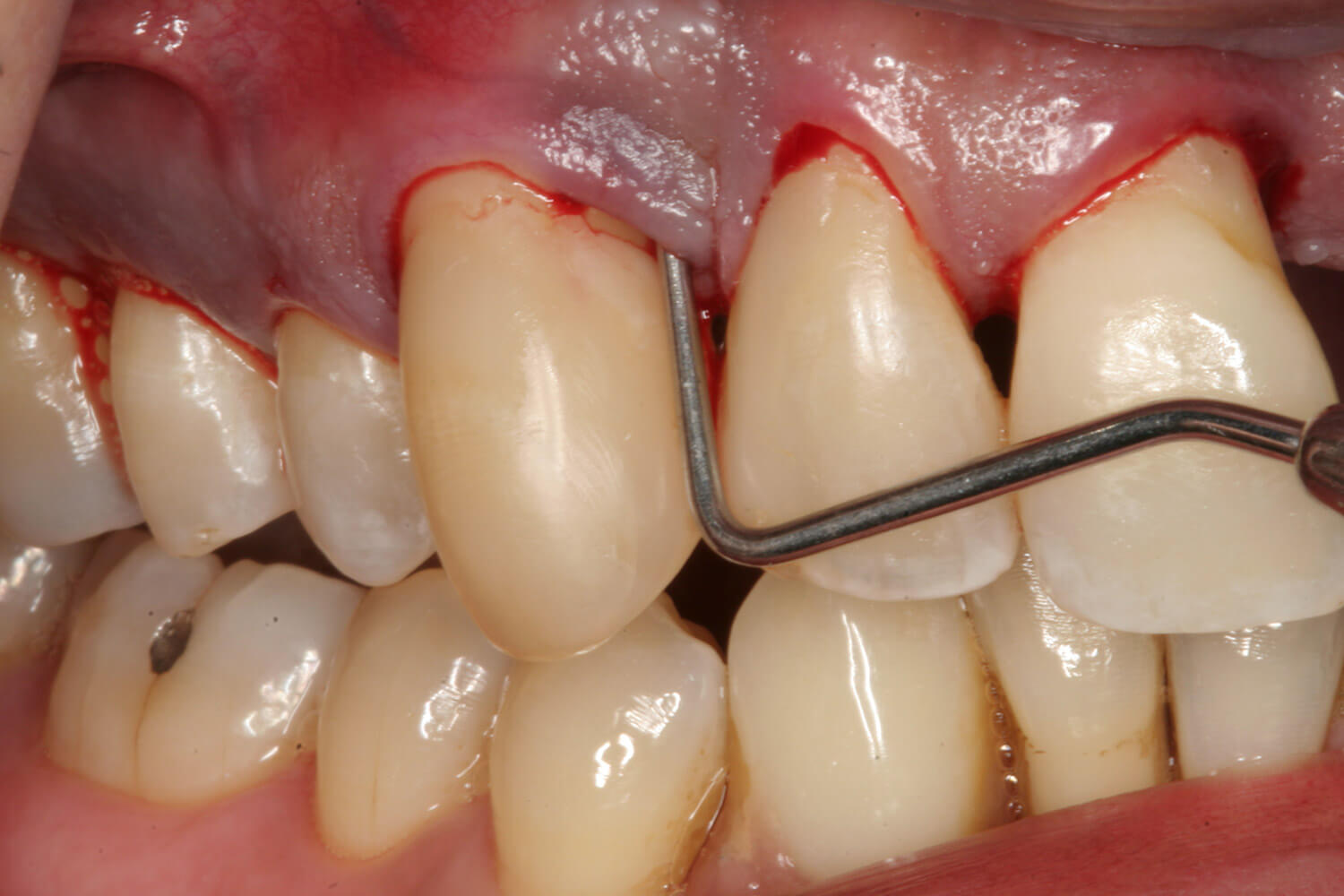 - Gums that are pulling away (receded) from the teeth
